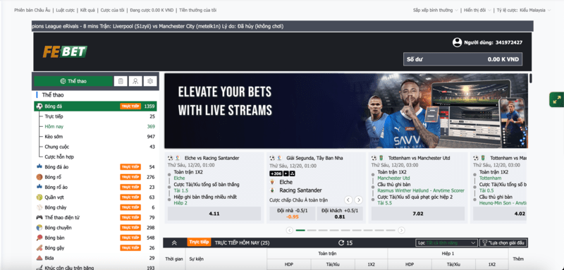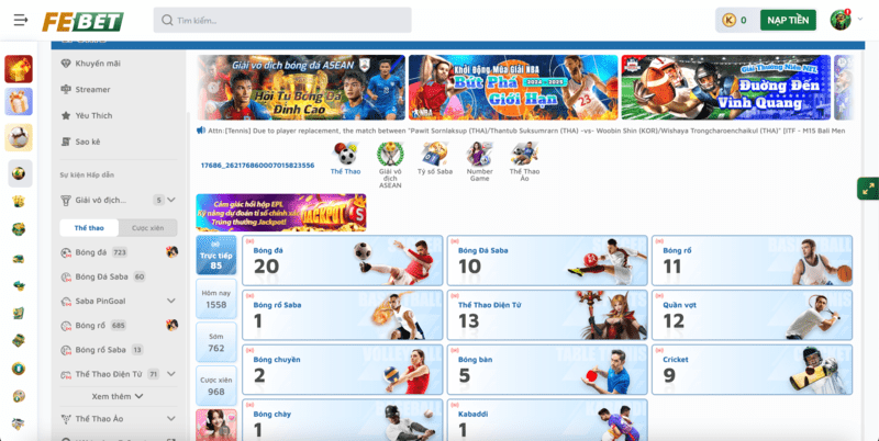 Sảnh Thể Thao Febet | Nhà Cái Xanh Chính Cùng Tỷ Lệ Kèo Hấp Dẫn