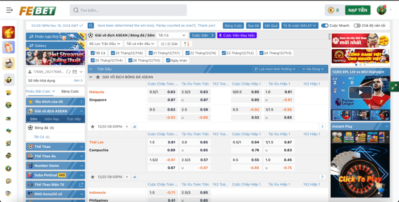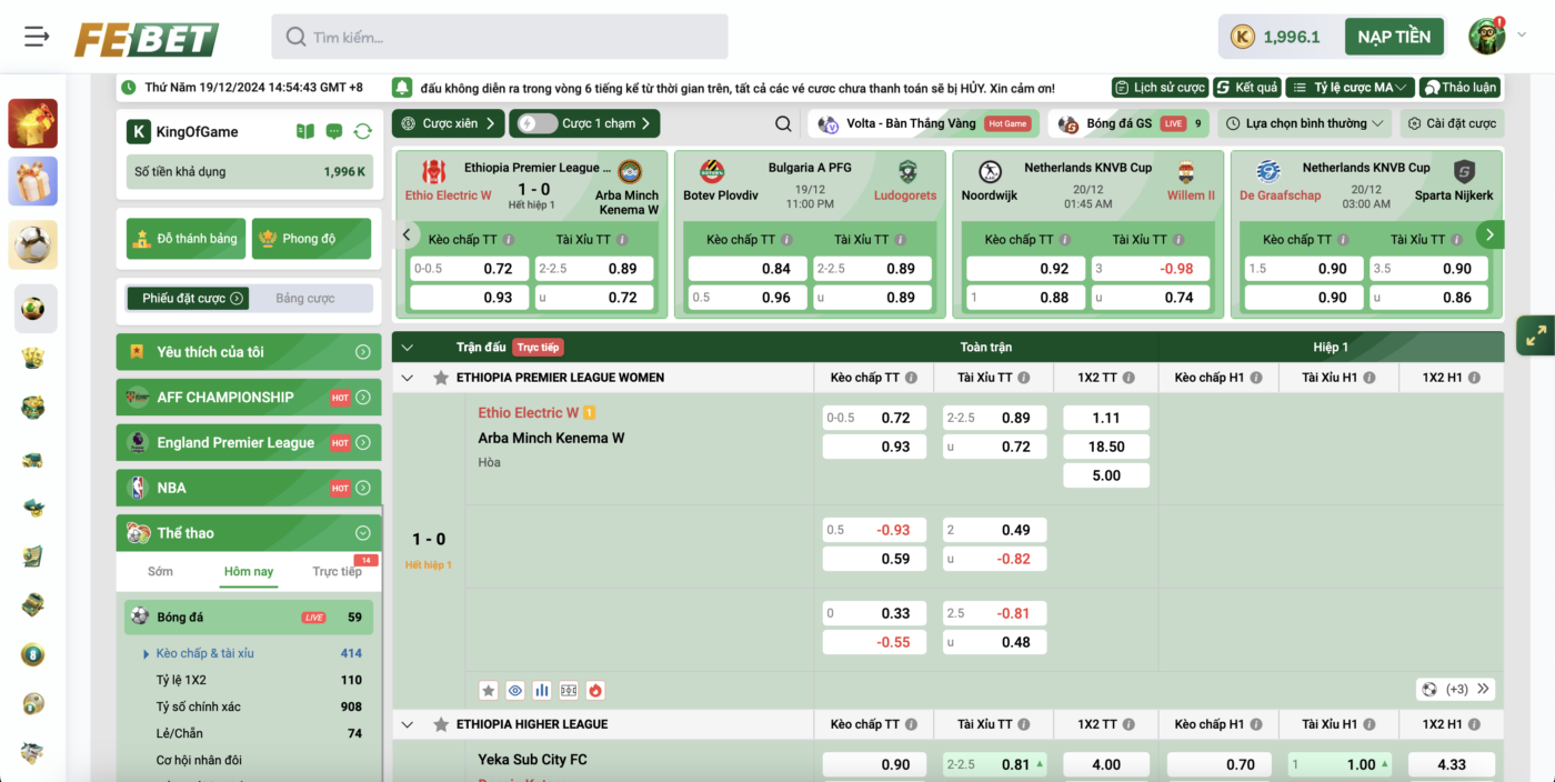 Hơn nữa, Febet còn thường xuyên cập nhật tỷ lệ cược theo diễn biến của trận đấu, giúp bạn nắm bắt thời cơ để đặt cược một cách hiệu quả nhất.